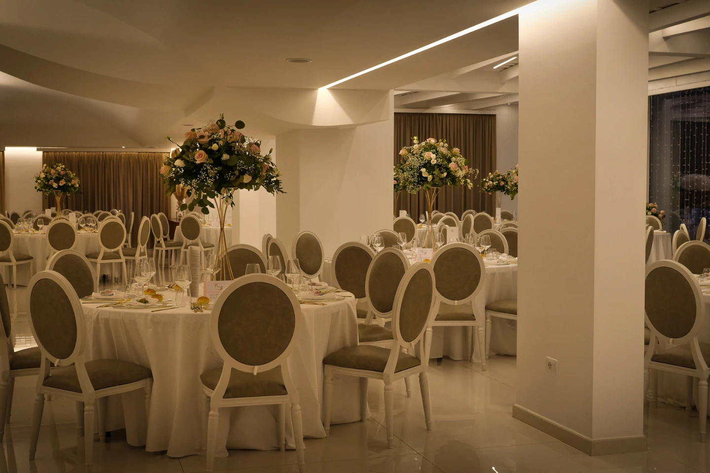Gli interni di Mira Ricevimenti uniscono eleganza, luce e design contemporaneo. Ogni sala è pensata per accogliere gli ospiti in un ambiente raffinato, sobrio e personalizzabile. Linee essenziali, arredi luminosi e atmosfere calde creano la cornice perfetta per ricevimenti moderni, intimi e indimenticabili.